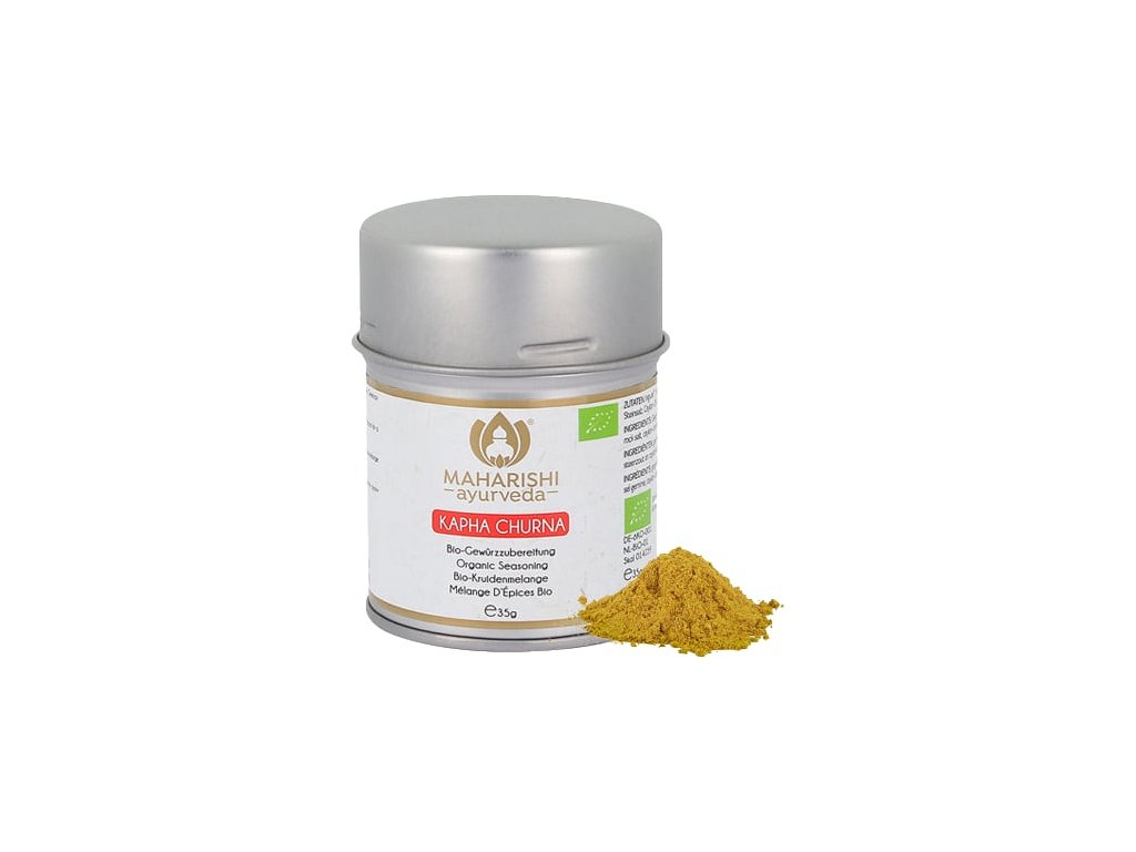 Šikovne vyvážte ťažko stráviteľné jedlá pridaním príjemnej pikantnosti do pokrmu s trochou Kapha Churny. Zázvor, koriander, čierne korenie, trstinový cukor, kurkuma, soľ a cejlónska škorica.